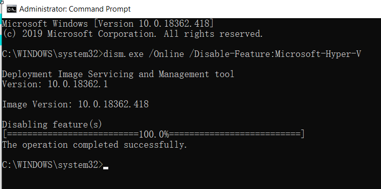 dism.exe /Online /Disable-Feature:Microsoft-Hyper-V