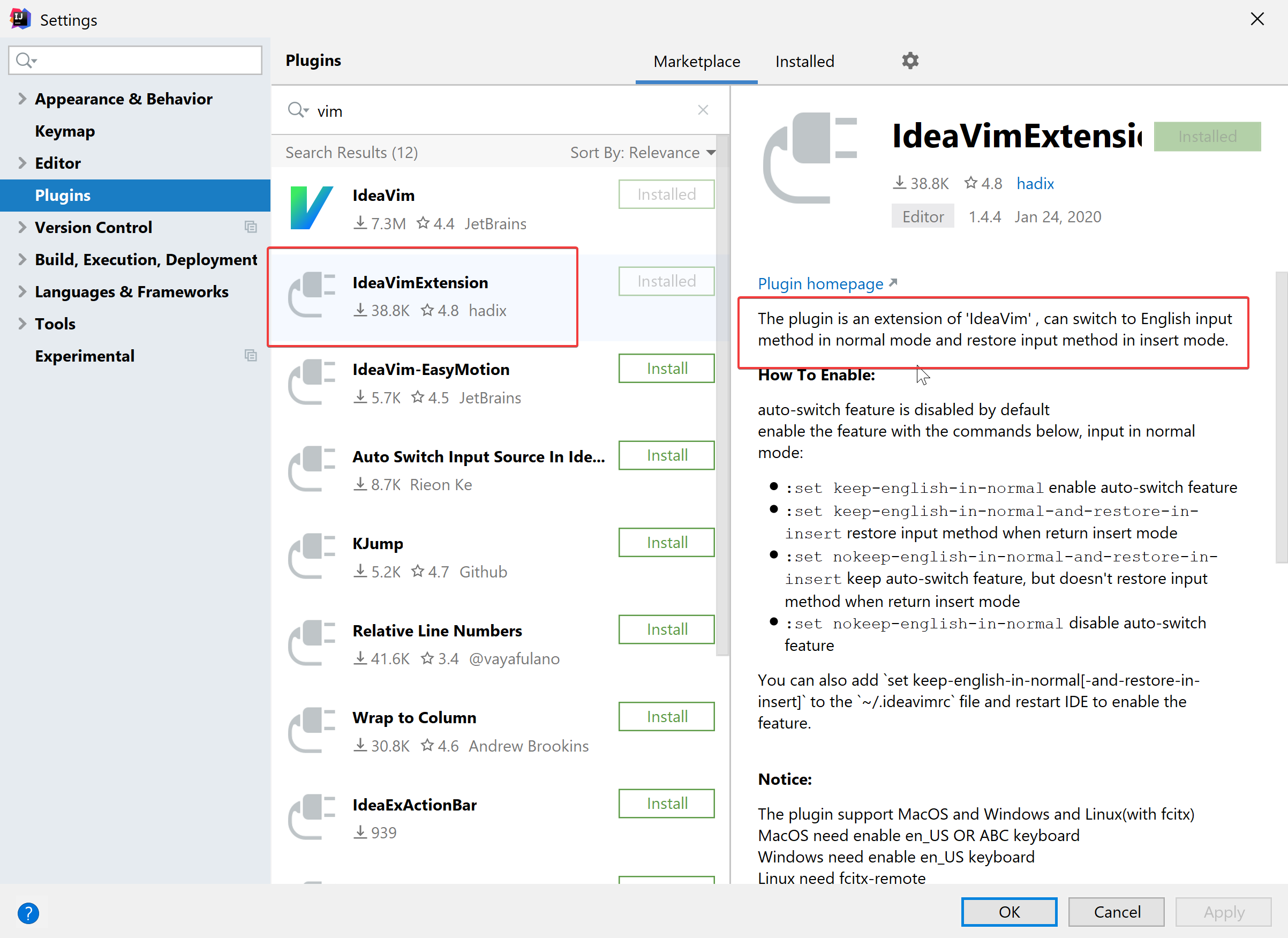 今天在 IntelliJ Idea 上看到一个 vim 的插件可以自动切换输入法, 惊为天人呀, 解决大问题。